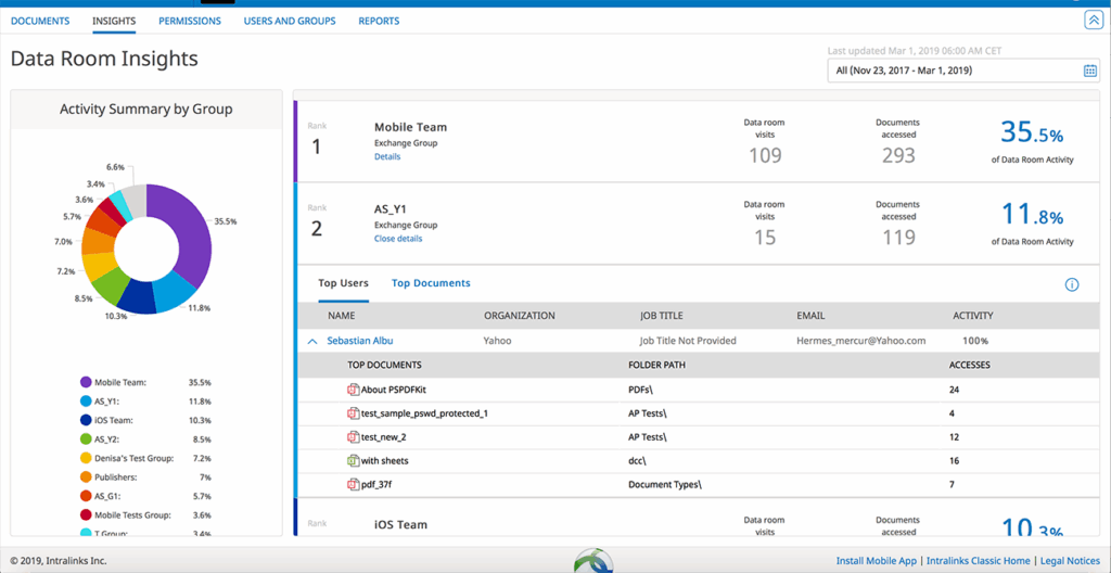 Intralinks VDRPro is used by many large organizations, including Fortune 1000 companies, to support a wide range of deals. The platform provides tools for managing both complex transactions and standard due diligence processes, offering greater control, visibility, and enterprise-grade security for sensitive documents.